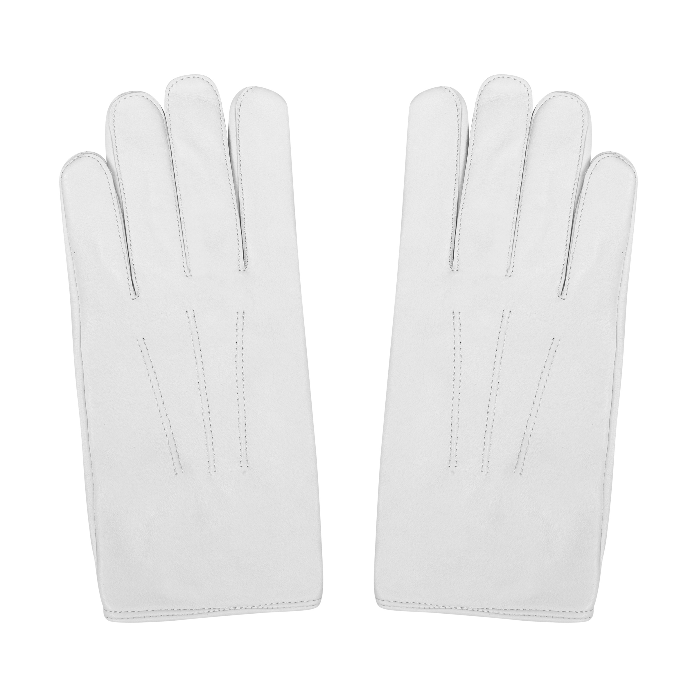 Replika letnich rękawiczek paradnych. Wykonane z naturalnej licowej skóry w kolorze białym. Na zewnętrznej stronie rękawiczek są trzy przeszycia, zaś odcinek na nadgarstku jest zapinany napą. Rękawiczki są bardzo miękkie w dotyku.