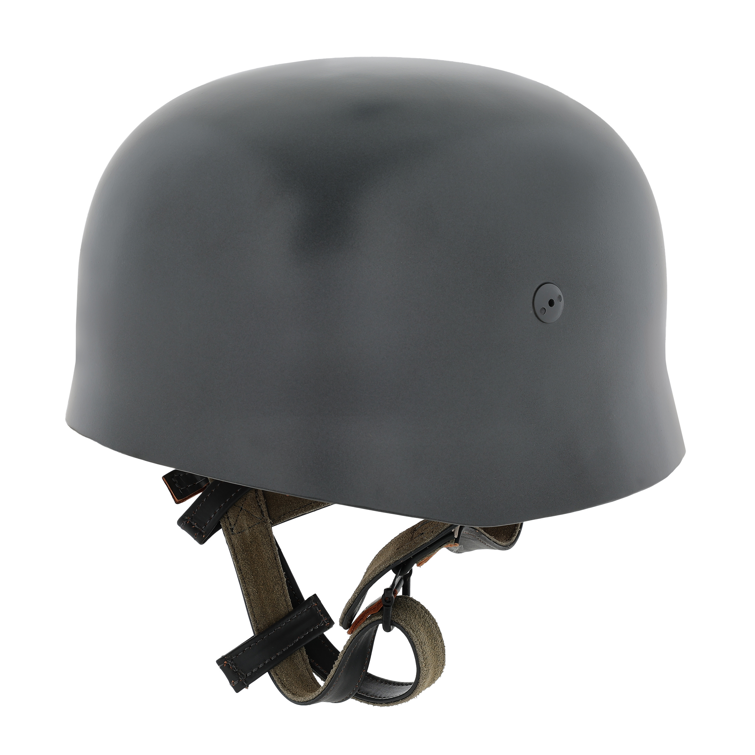 Doskonała replika hełmu niemieckiego M38, używanego powszechnie w jednostkach spadochronowych armii niemieckiej podczas drugiej wojny światowej. Hełm jest w kolorze ciemnoszarym, posiada wkład z naturalnej skóry.
