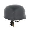 Doskonała replika hełmu niemieckiego M38, używanego powszechnie w jednostkach spadochronowych armii niemieckiej podczas drugiej wojny światowej. Hełm jest w kolorze ciemnoszarym, posiada wkład z naturalnej skóry.