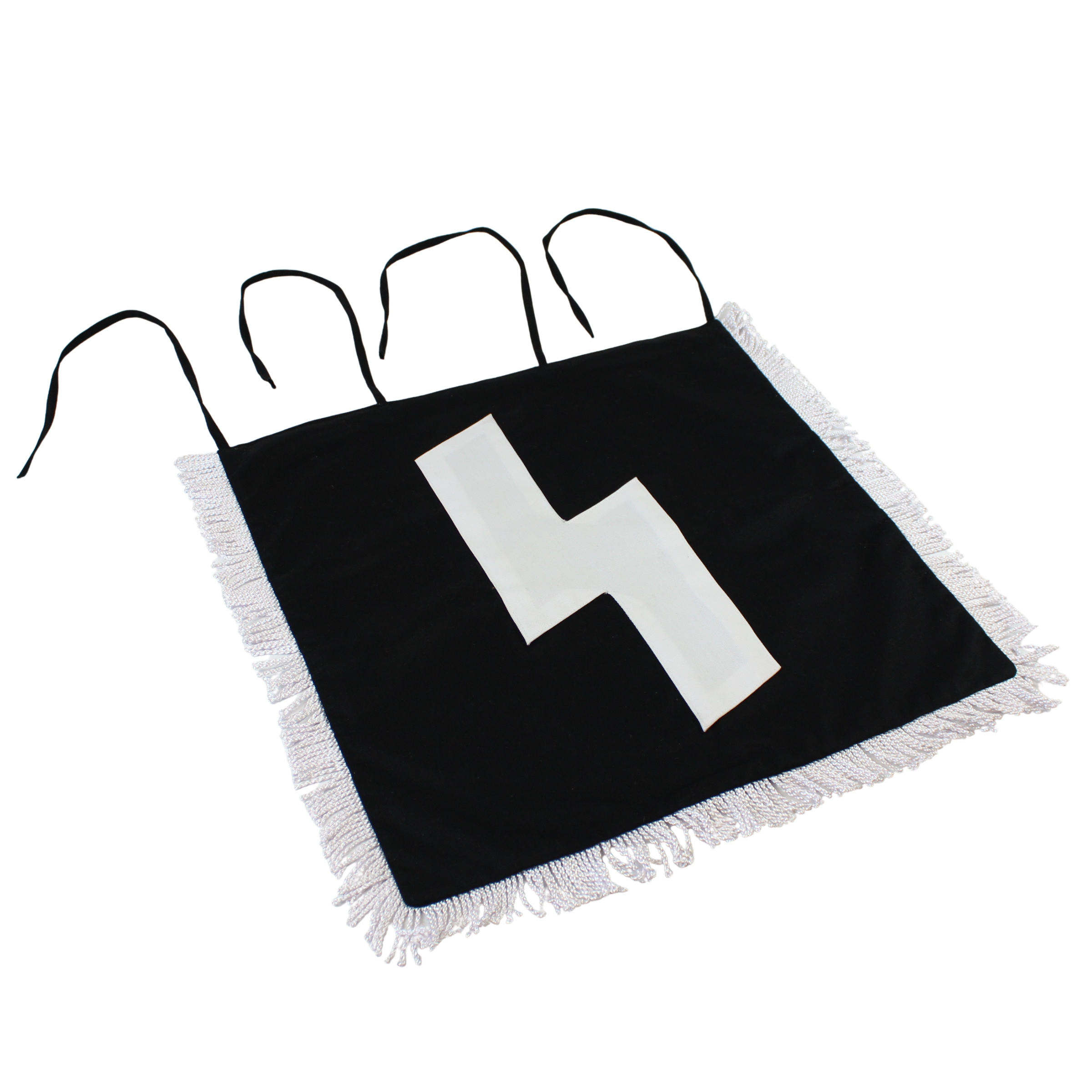 Replika pororoca trębacza Deutsche Jugenvolk. Proporzec wykonany metoda zszywania odpowiednio wyciętych kawałków materiału. Na 3 krawędziach przyszyte są ozdobne frędzle. Zaś na jednym boku 4 tasiemki służące do mocowania do trąbki.