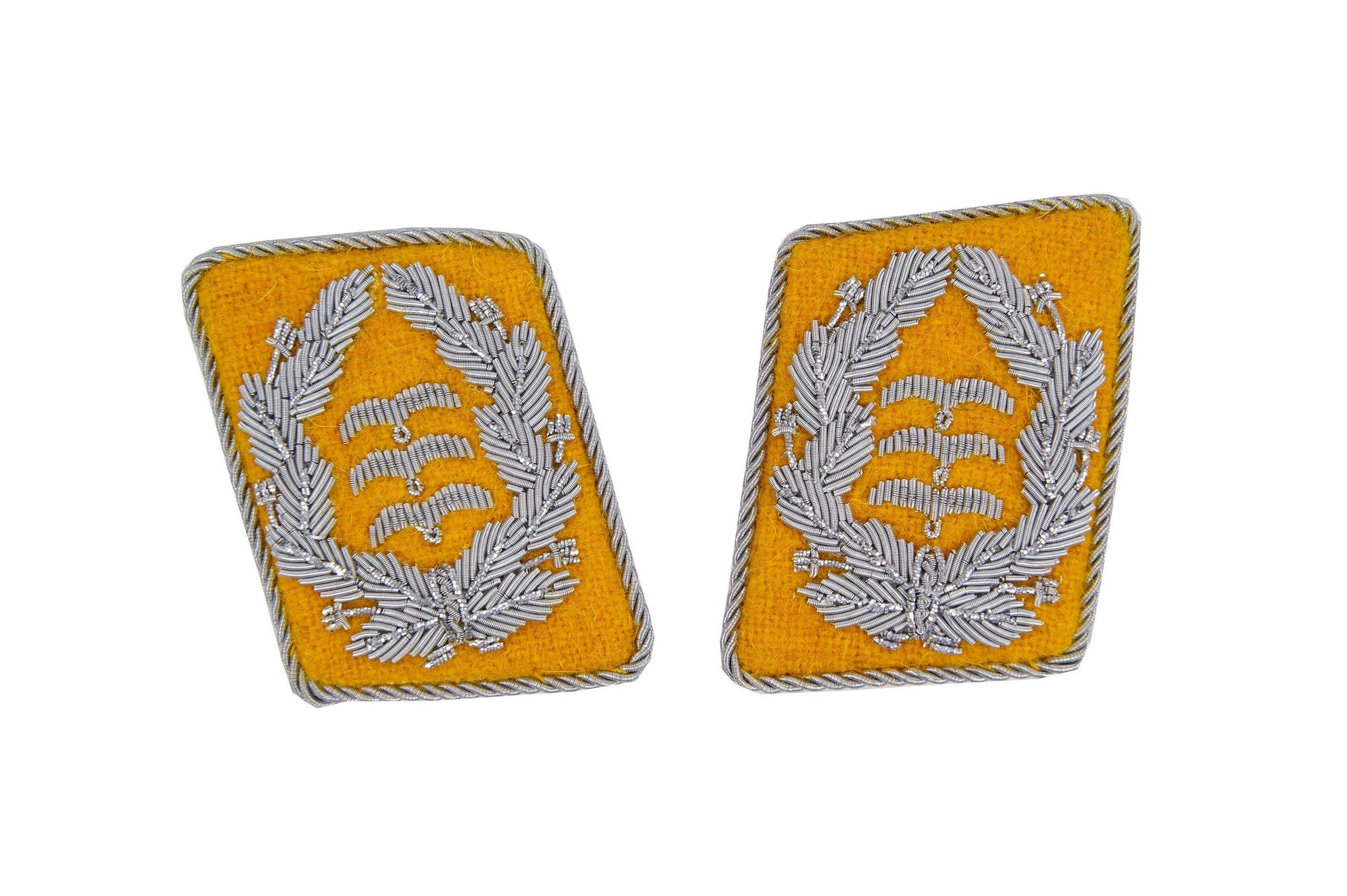 Doskonała replika patek oficerskich Luftwaffe w barwie broni personelu latającego. Patki haftowane są bajorkiem na suknie w kolorze żółtym.