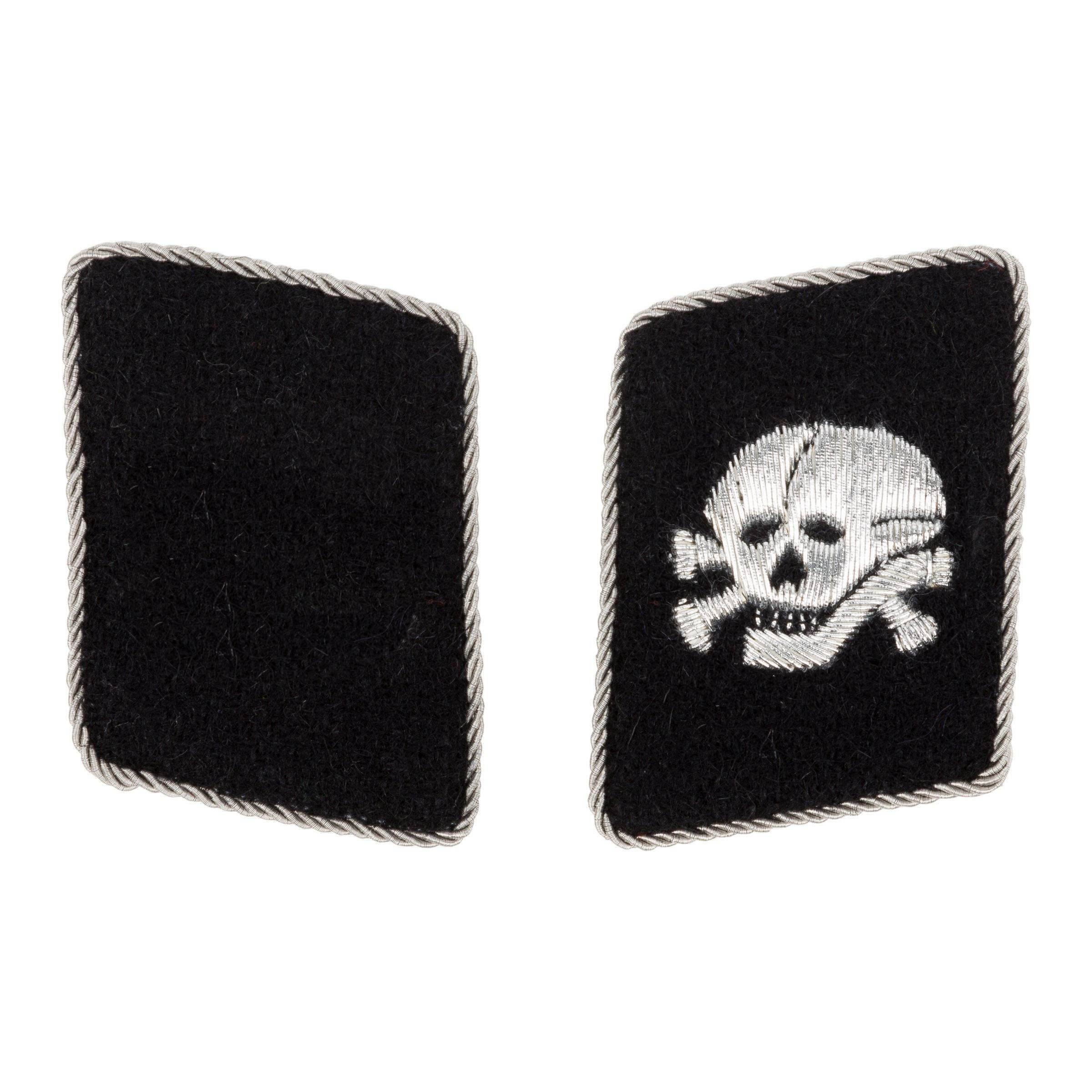 Doskonała replika patek oficerskich kołnierzowych Waffen-SS 3 Dywizji Pancernej SS "Totenkopf", wersja z jedną czaszką.