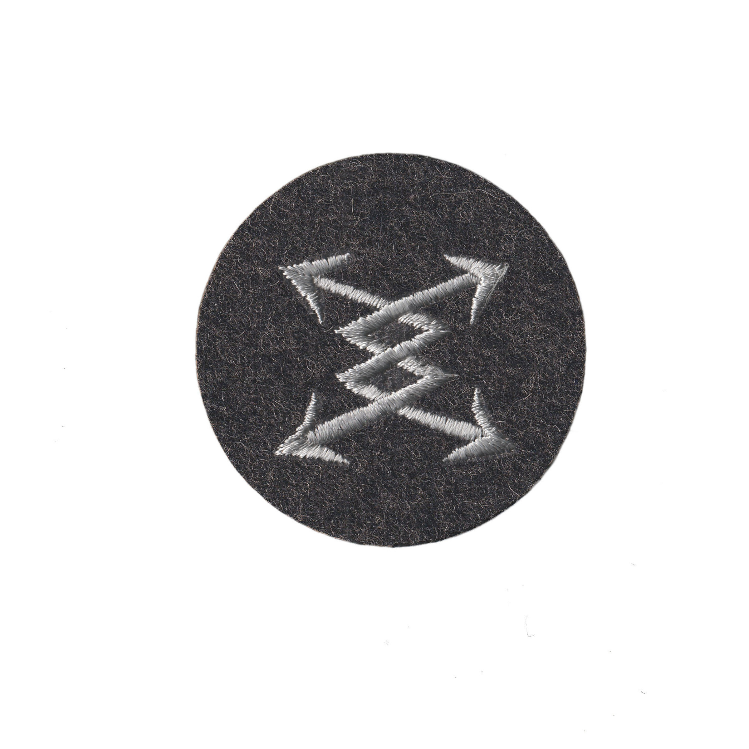 Doskonała replika obszyć specjalizacji wojskowej dla żołnierzy służących w Luftwaffe. Obszycie haftowane bawełnianą szaro-srebrną nicią na sukiennym podkładzie w kolorze blaugrau.