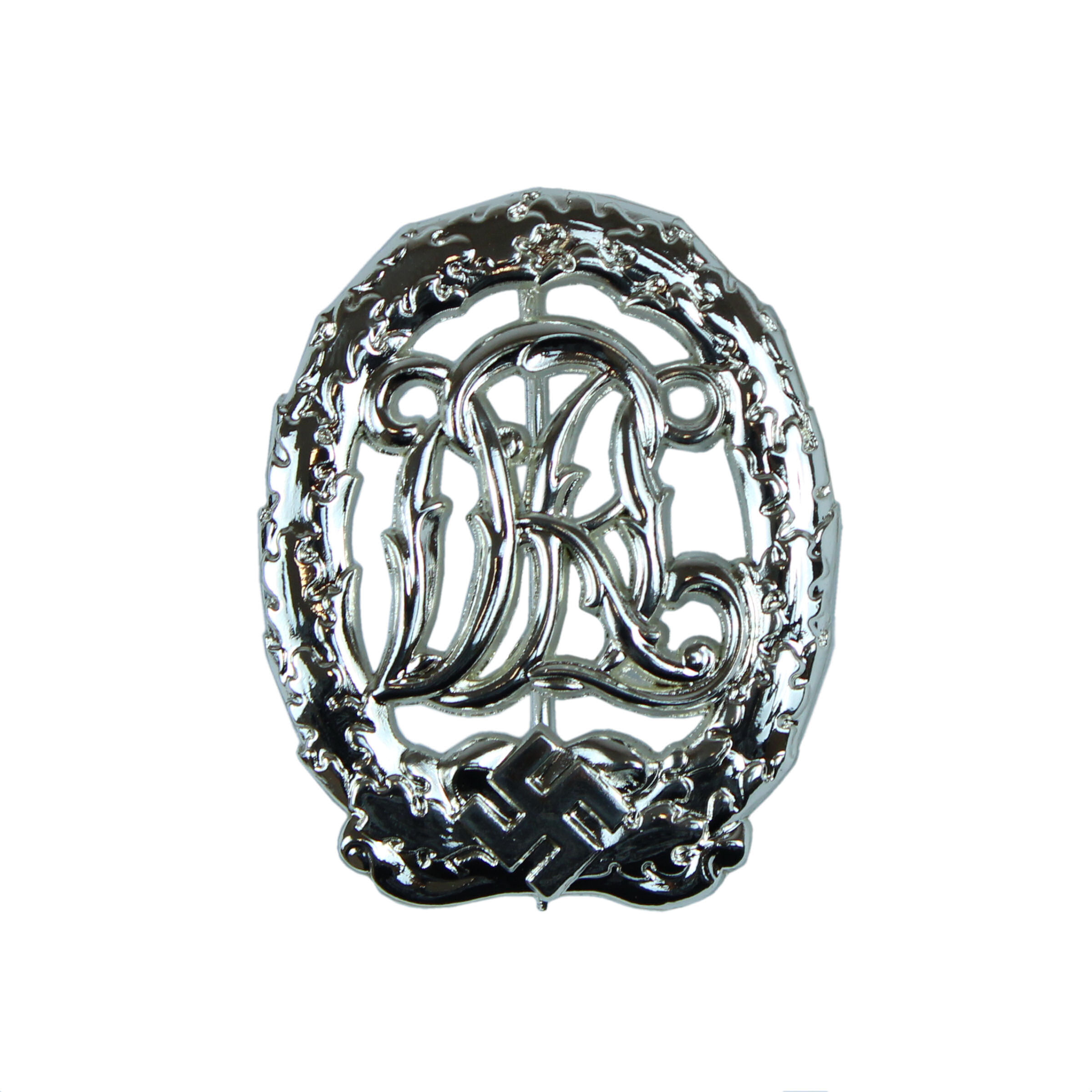 Doskonała replika niemieckiego odznaczenia sportowego DRL - "Deutsche Reichsauszeichnung für Leibesübungen" - za osiągnięcia sportowe i sprawność fizyczną. Odznaka w wersji w srebrze. Ta wersja odznaczenia była przyznawana od 1935 roku. Choć jest to cywilne odznaczenie, otrzymywali je również członkowie organizacji paramilitarnych jak i żołnierze czy funkcjonariusze służb z prawem do noszenia na mundurze. Istniały 3 klasy tego odznaczenia - brązowa, srebrna oraz złota.
