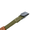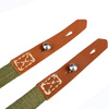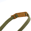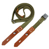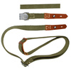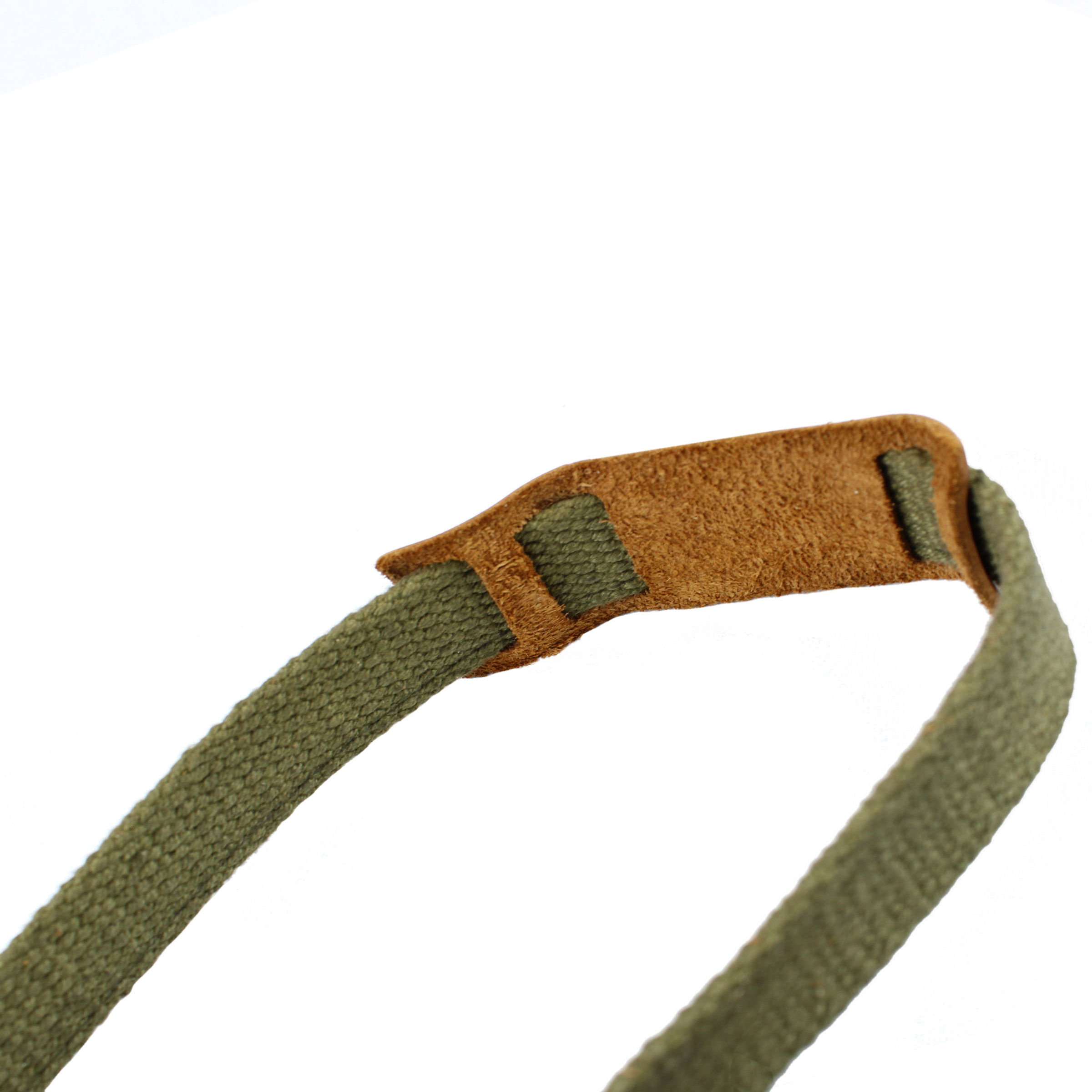Doskonała replika parciano-skórzanych pasków do puszki od maski przeciw gazowej. Paski są zgodne z oryginałem, wykonane zostały z mocnej taśmy parcianej wzmocnionej wstawkami skórzanymi (ich zadaniem było ograniczyć przecieranie się pasków parcianych na zaczepach puszki). Wstawki skórzane są wykonane z naturalnej skóry roślinnie garbowanej, zaś elementy metalowe wykonano z ocynkowanej stali. Komplet składa się z dwóch głównych pasków: jednego nośnego i drugiego służącego do podczepiania puszki pod pas główny, oraz luźnego wycinka tasiemki do klamry zamykającej puszkę.