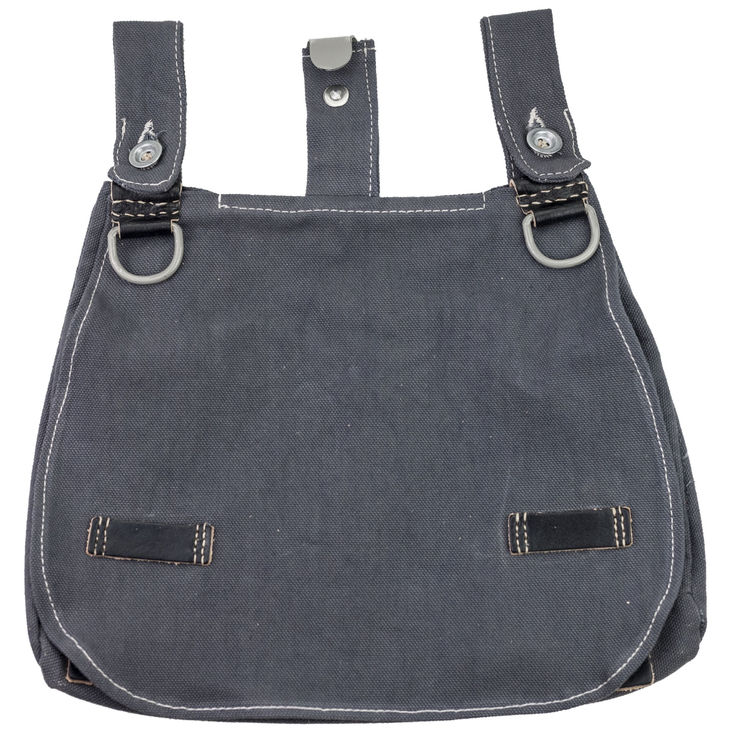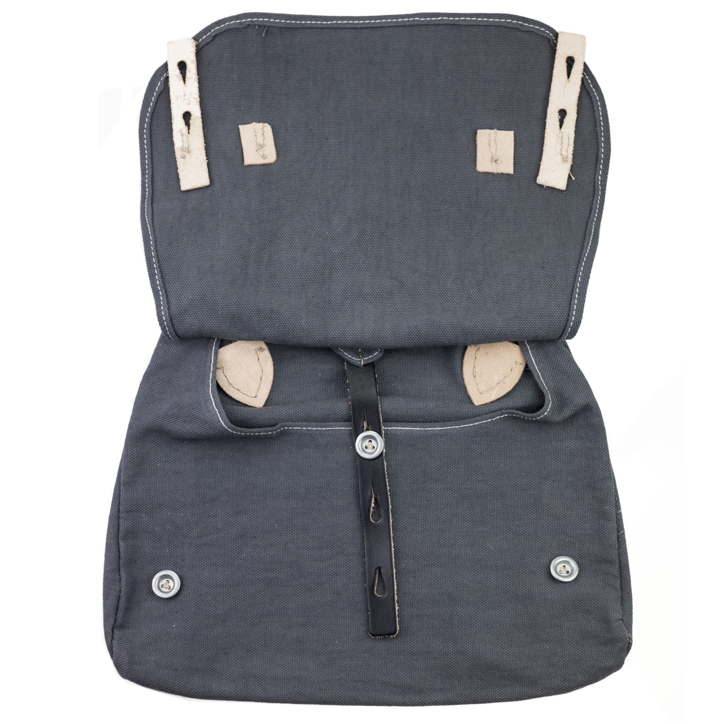 Doskonała replika chlebaka M31 w późno wojennej wersji. Chlebak wykonany z brezentowego materiału, w wersji wojennej bez skórzanych wzmocnień na paskach nośnych. Paski i skórzane przelotki z gładkiej, czarnej roślinnie garbowanej skóry. D-ringi stalowe malowane na prawidłowy kolor, guziki aluminiowe.