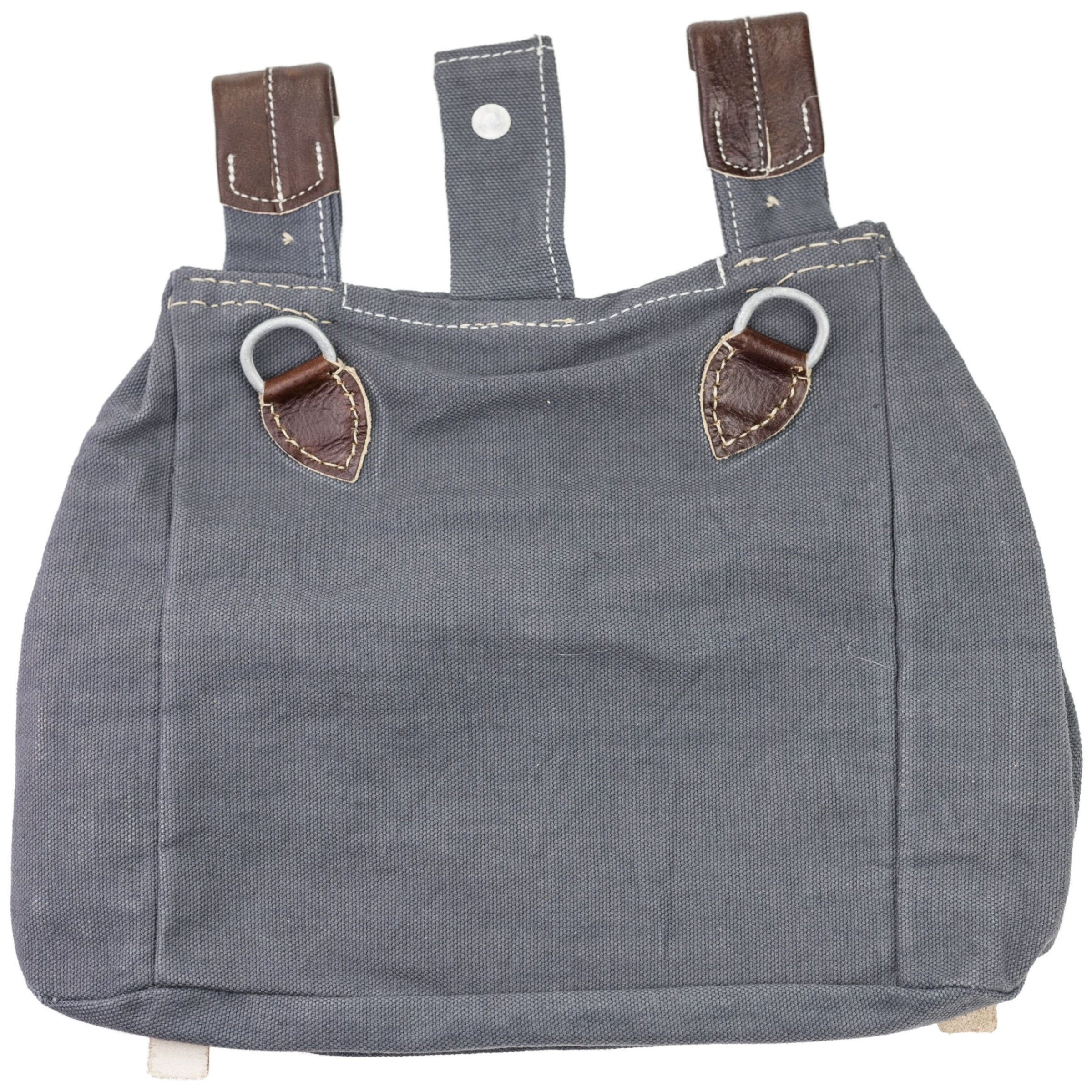 Doskonała replika chlebaka M31 we wczesnej wersji. Chlebak wykonany z płótna brezentu bawełnianego w kolorze blaugrau, skórki wzmacniające i paski wykonane ze skóry w kolorze brązowym. Okucia wczesne, aluminiowe.