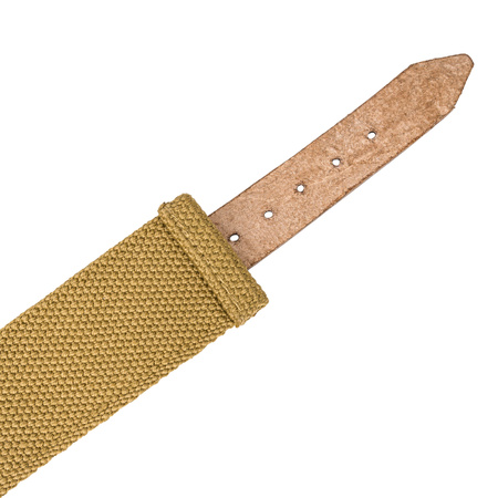 Wierna replika niemieckiego parcianego paska do spodni M43/M44. Wykonany z parcianego materiału, zapięcie oraz regulacja pasa odbywa się poprzez drugi, mniejszy skórzany pasek.
