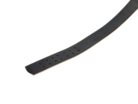 Replika niemieckiego pasa głównego w wersji późno wojennej M44. Pas wykonany z naturalnej skóry gładką stroną na zewnątrz. Wersja bez paska regulacyjnego. Malowany na czarno. Powierzchnia zabezpieczona przed strzępieniem. Hak wykonany ze stali.
