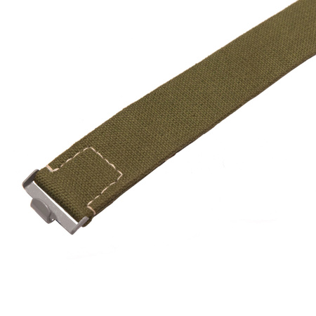 Replika niemieckiego tropikalnego pasa głównego w wersji wczesnej. Wykonany z zielonej bawełnianej party, a pasek regulacyjny wykonany jest z naturalnej skórzany. Hak stalowy pomalowany na właściwy kolor. Pasek do regulacji szyty szwem widocznym.