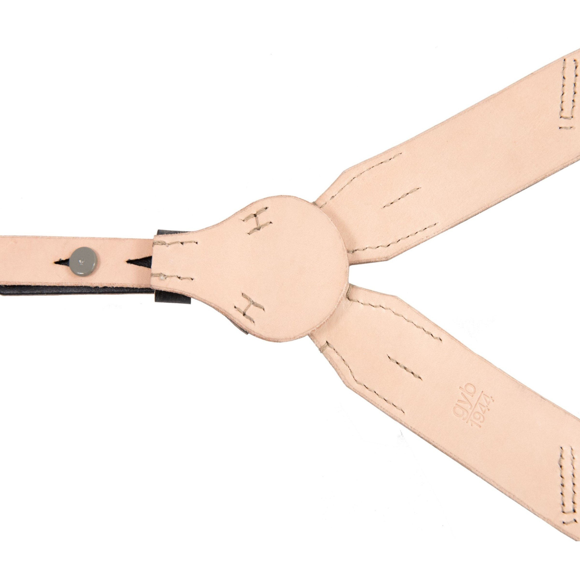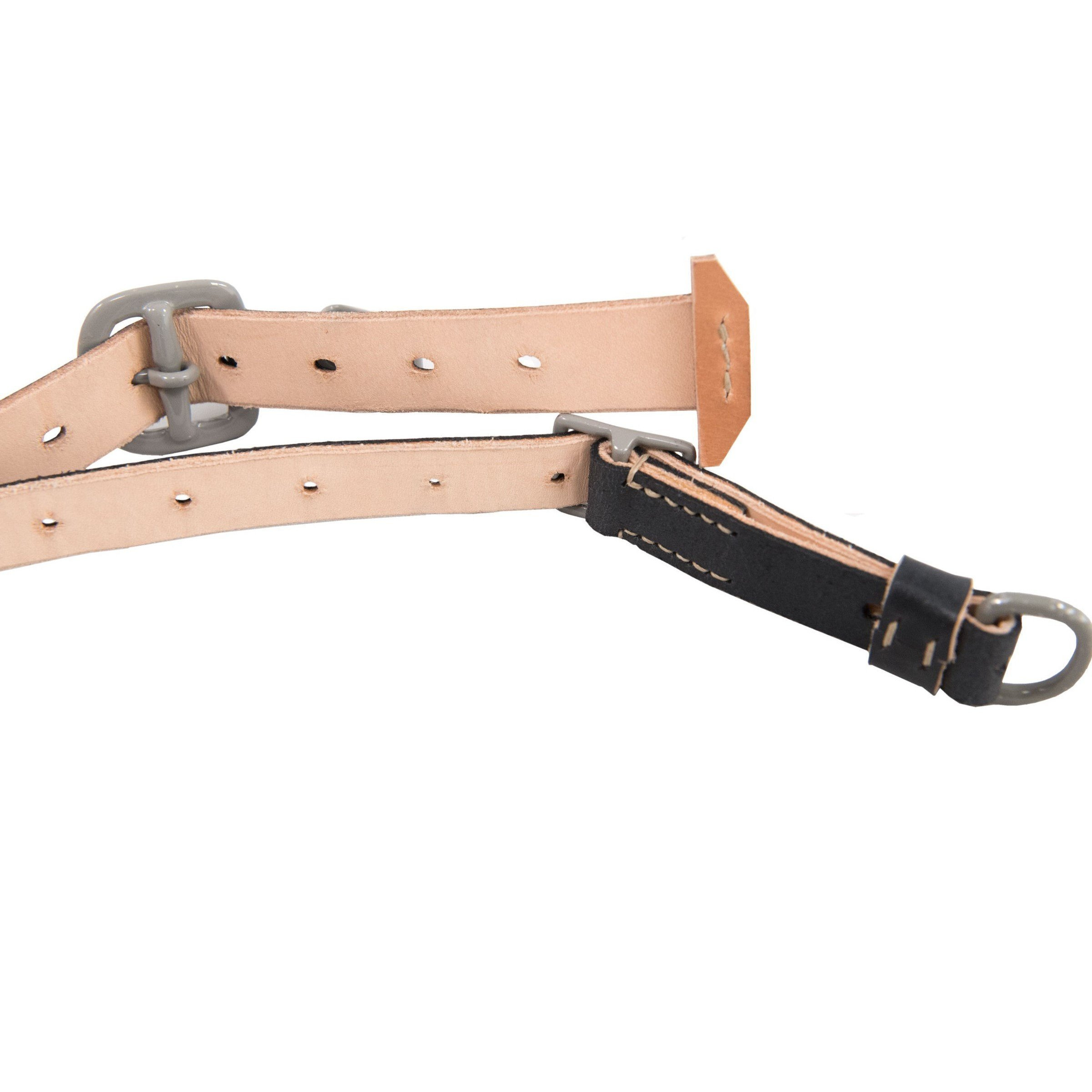 Doskonała replika niemieckich szelek bojowych, wykonanych z grubej i ścisłej garbowanej roślinnie skóry. Szelki szyte ręcznie woskowaną nicią i są barwione na czarno oraz zabezpieczone przed strzępieniem się. Na paskach głównych widoczny jest szew. Haki oraz wszelkie okucia są wykonane ze stali i pomalowane metodą opryskową na właściwy kolor. Szelki posiadają kopie oryginalnych stempli. Regulacja długości szelek za pomocą klamerek.