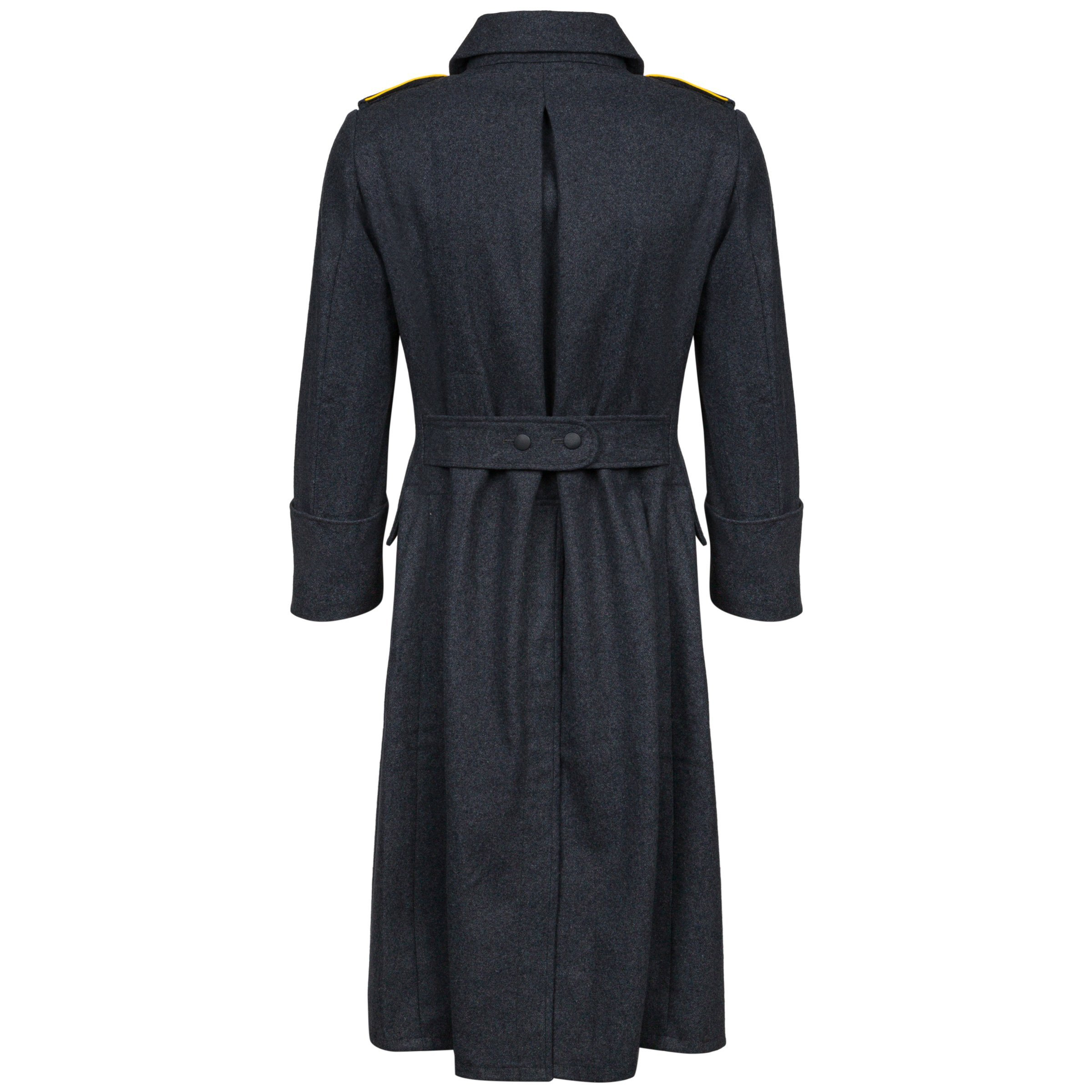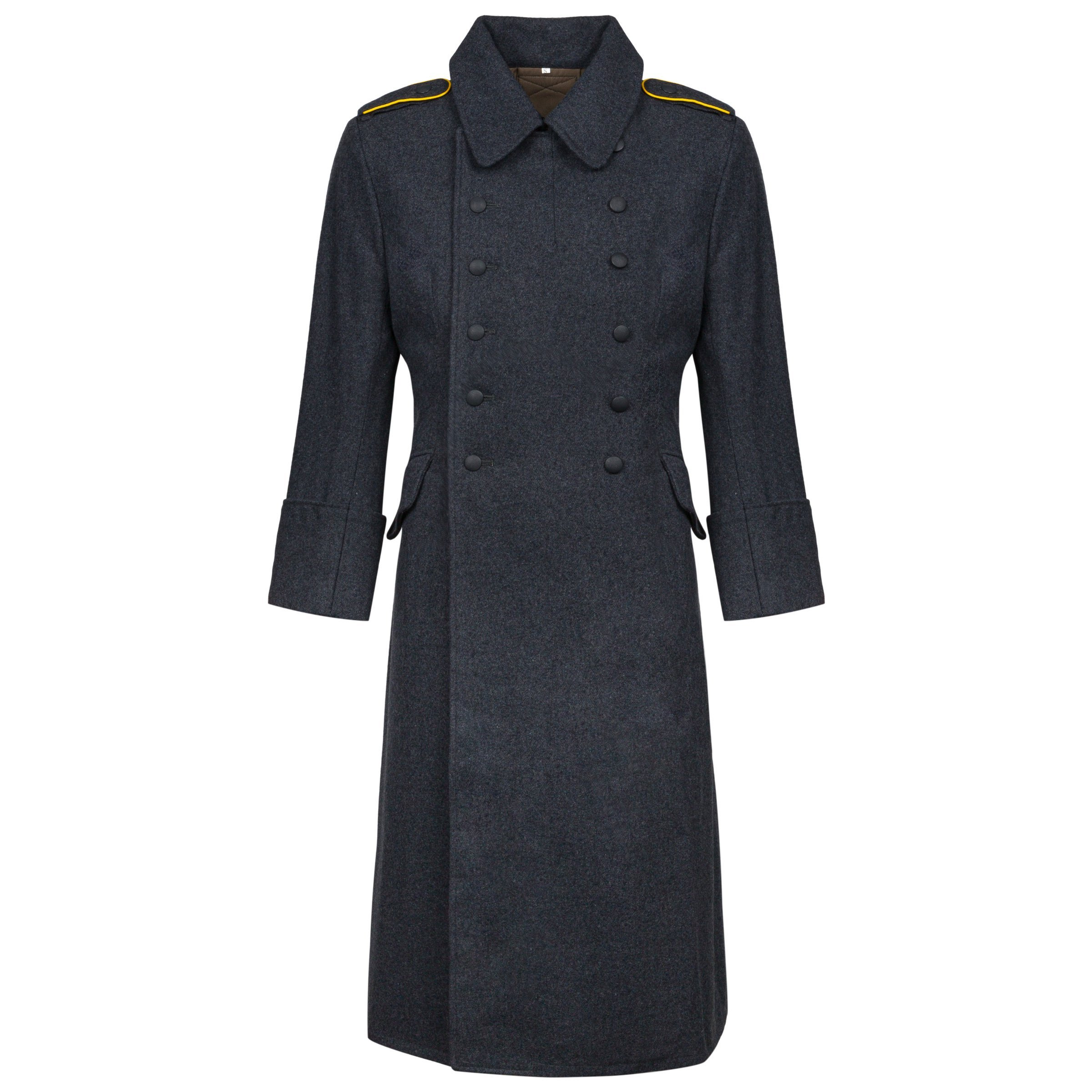 Doskonała replika sukiennego płaszcza Luftwaffe M35 w odcieniu Blaugrau. Płaszcz posiada dwa rzędy groszkowanych guzików, również w kolorze Blaugrau, dolną haftkę, guziki oraz specjalny języczek do spinania kołnierza na stojąco. Do płaszcza są dopięte naramienniki z żółtym otokiem. Dodatkowo płaszcz posiada osłonę górnej haftki, co zwiększa komfort jego noszenia. Produkcja na zlecenie Nestof®!