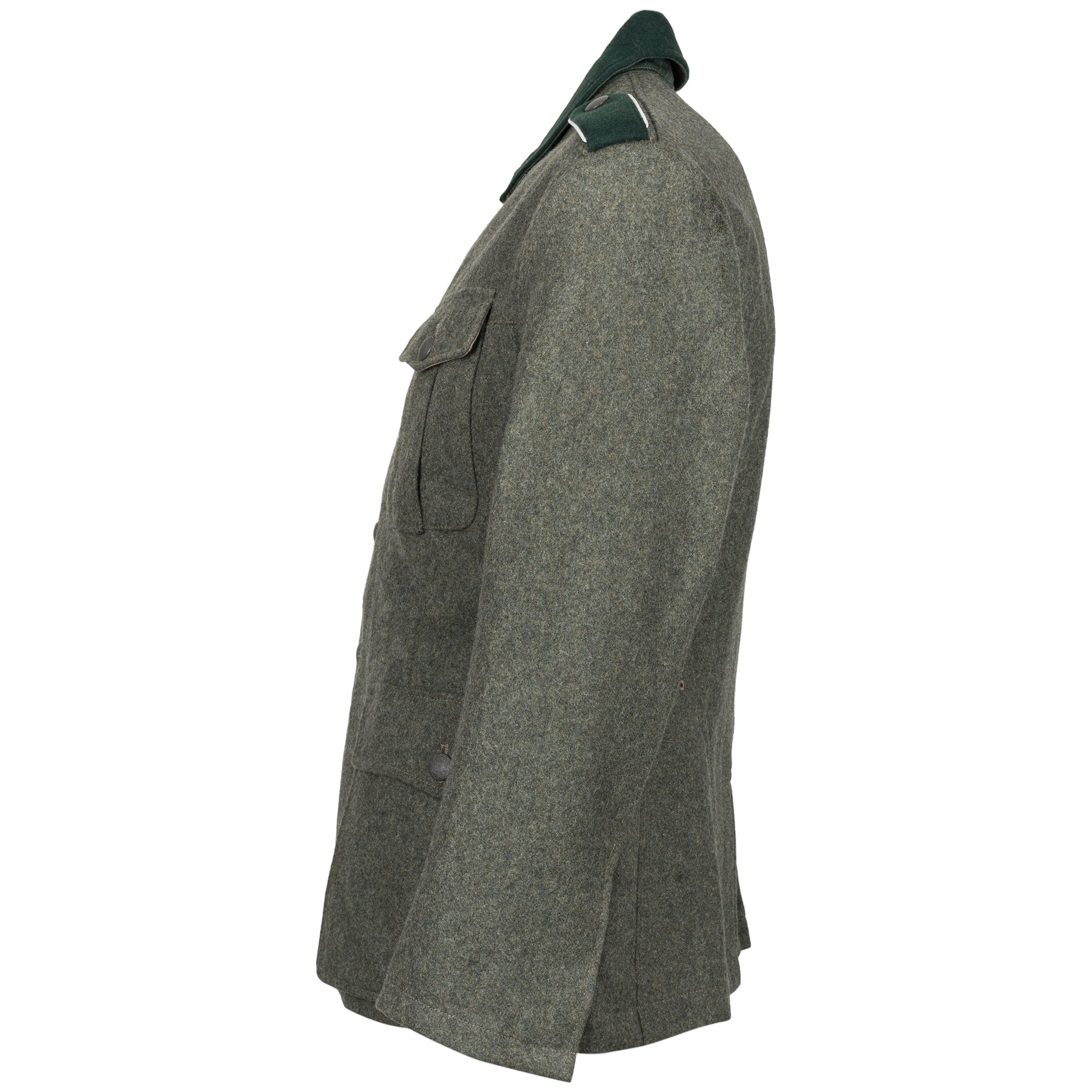 Wierna replika bluzy mundurowej Feldbluse M36, wykonana z sukna w kolorze Feldgrau z ciemnozielonym kołnierzem. Bluza wykonana z dużą dbałością o szczegóły, wyprodukowana bezpośrednio na zlecenie Nestof® - w bardzo wysokiej jakości. Bluza posiada naramienniki M36 w barwie broni piechoty - biały. Idealnie odtworzony kolor Feldgrau.