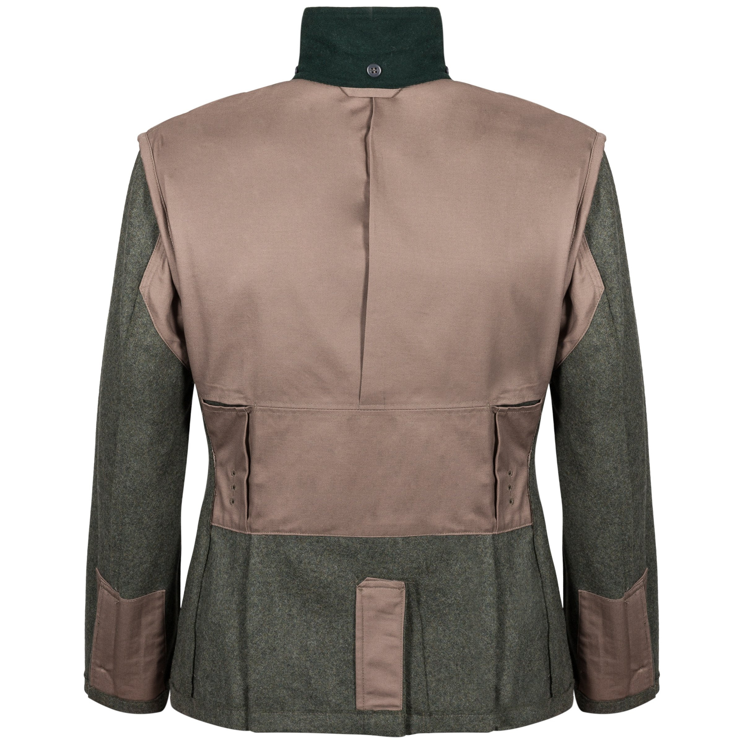 Wierna replika bluzy mundurowej Feldbluse M36, wykonana z sukna w kolorze Feldgrau z ciemnozielonym kołnierzem. Bluza wykonana z dużą dbałością o szczegóły, wyprodukowana bezpośrednio na zlecenie Nestof® - w bardzo wysokiej jakości. Bluza posiada naramienniki M36 w barwie broni piechoty - biały. Idealnie odtworzony kolor Feldgrau.
