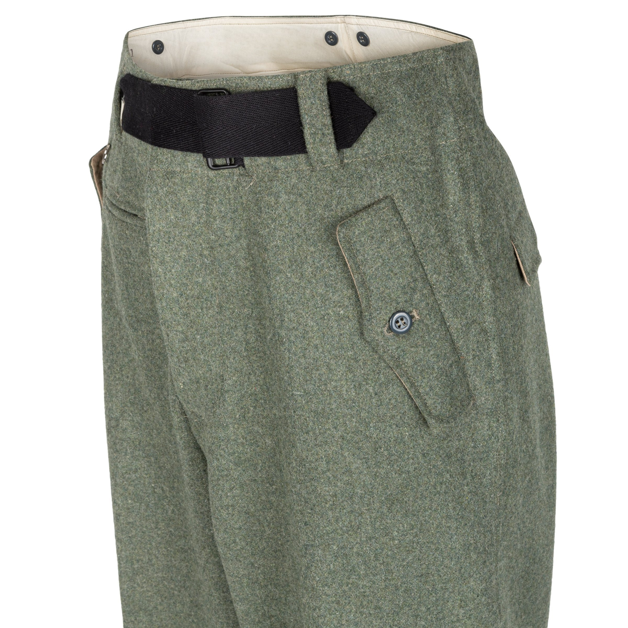 Doskonała replika niemieckich spodni załóg artylerii szturmowej Wehrmachtu - Sturmgeschutzhose. Spodnie są wykonane z wełny w doskonale odtworzonym odcieniu feldgrau, poprawny krój i faktura materiału. Replika klasy Premium - produkcja na zlecenie Nestof®!