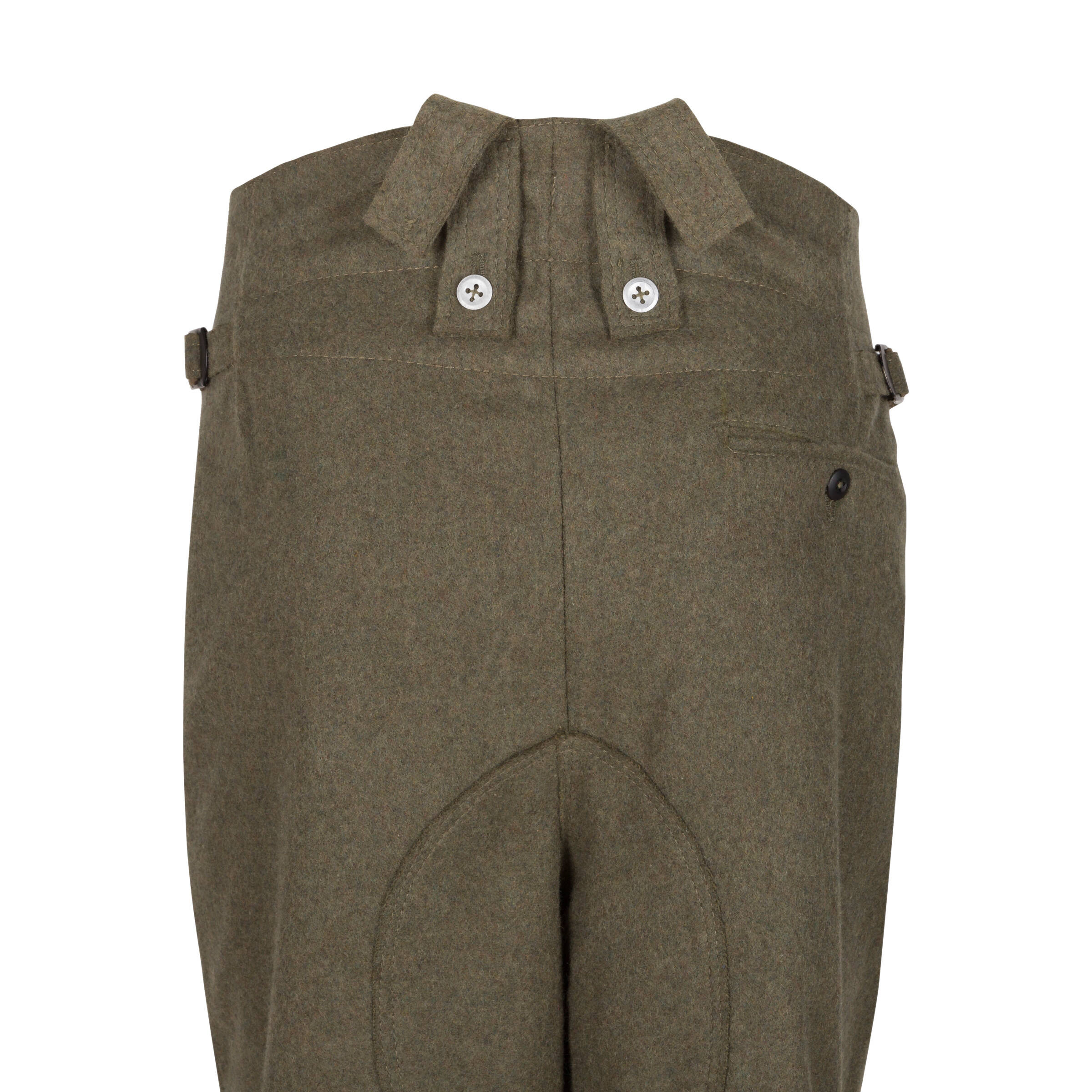 Replika spodni do munduru polowego, wykonana z sukna z bawełnianą podszewką. Spodnie nogawki mają zwężone na końcach, dzięki czemu idealnie pasują do trzewików. Spodnie wykonane z dużą dbałością o szczegóły - kolor, grubość, guziki i wzmocnienia są wykonane identycznie jak w oryginale. Spodnie posiadają dwie kieszenie z przodu i jedną z tyłu, wszystkie zapinane na guziki a także kieszonkę na zegarek z klapką. Guziki do szelek na tylnych paskach i po wewnętrznej stronie pasa z przodu.