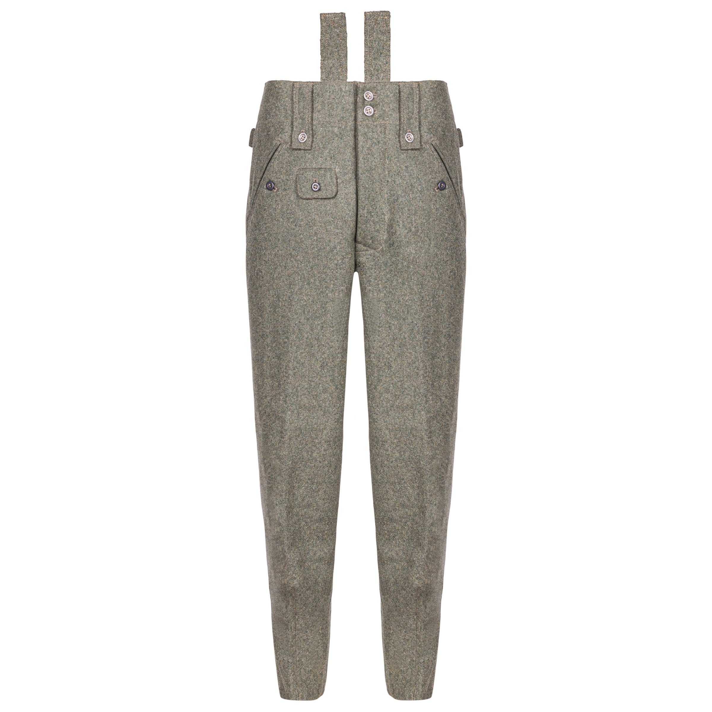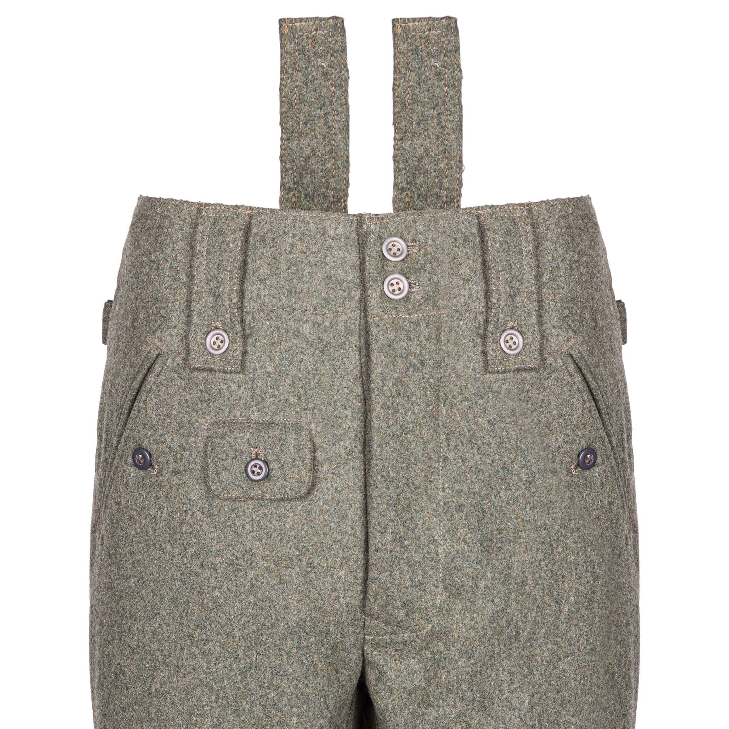 Doskonała replika niemieckich spodni M43. Spodnie są wykonane z sukna, w poprawnie odtworzonym odcieniu feldgrau. Spodnie są wykonane identycznie z oryginałem, dokładnie odtworzona jest gramatura oraz faktura materiału, guziki, zapięcie do ściągania z tyłu oraz zaczep do zegarka. Produkcja na zlecenie Nestof®.