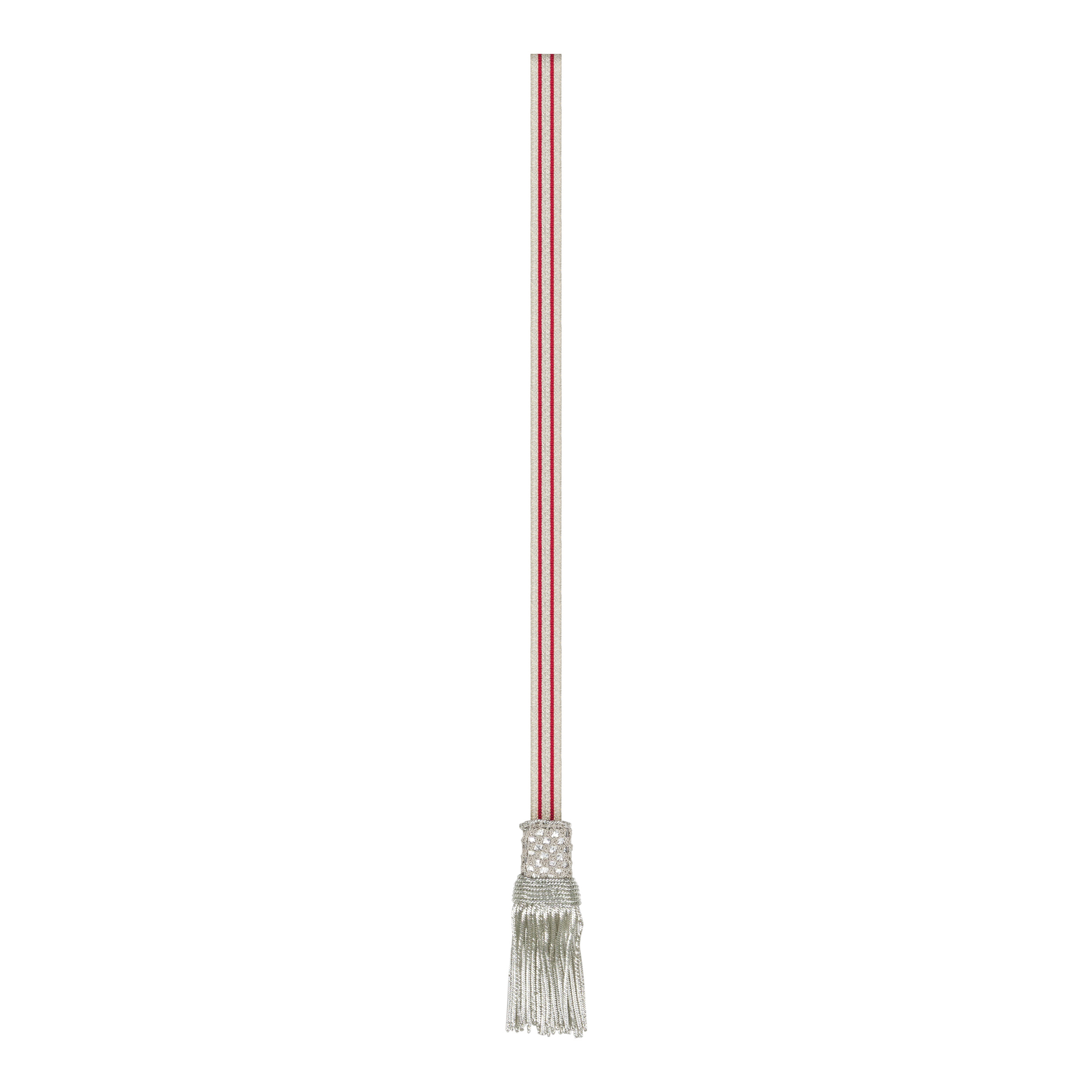 Replika polskiego temblaka wz. 1919 do szabli wz. 1919 oraz wz. 1921 w wersji dla oficerów. Pętla wykonana ze srebrnego bajorka z dwoma karmazynowymi prążkami. Chwost o przekroju owalnym jest otwarty u dołu. Szerokość taśmy: 1,5 cm cm; długość pętli: ok. 41 cm, długość chwosty (frędzli): ok. 12 (7) cm.