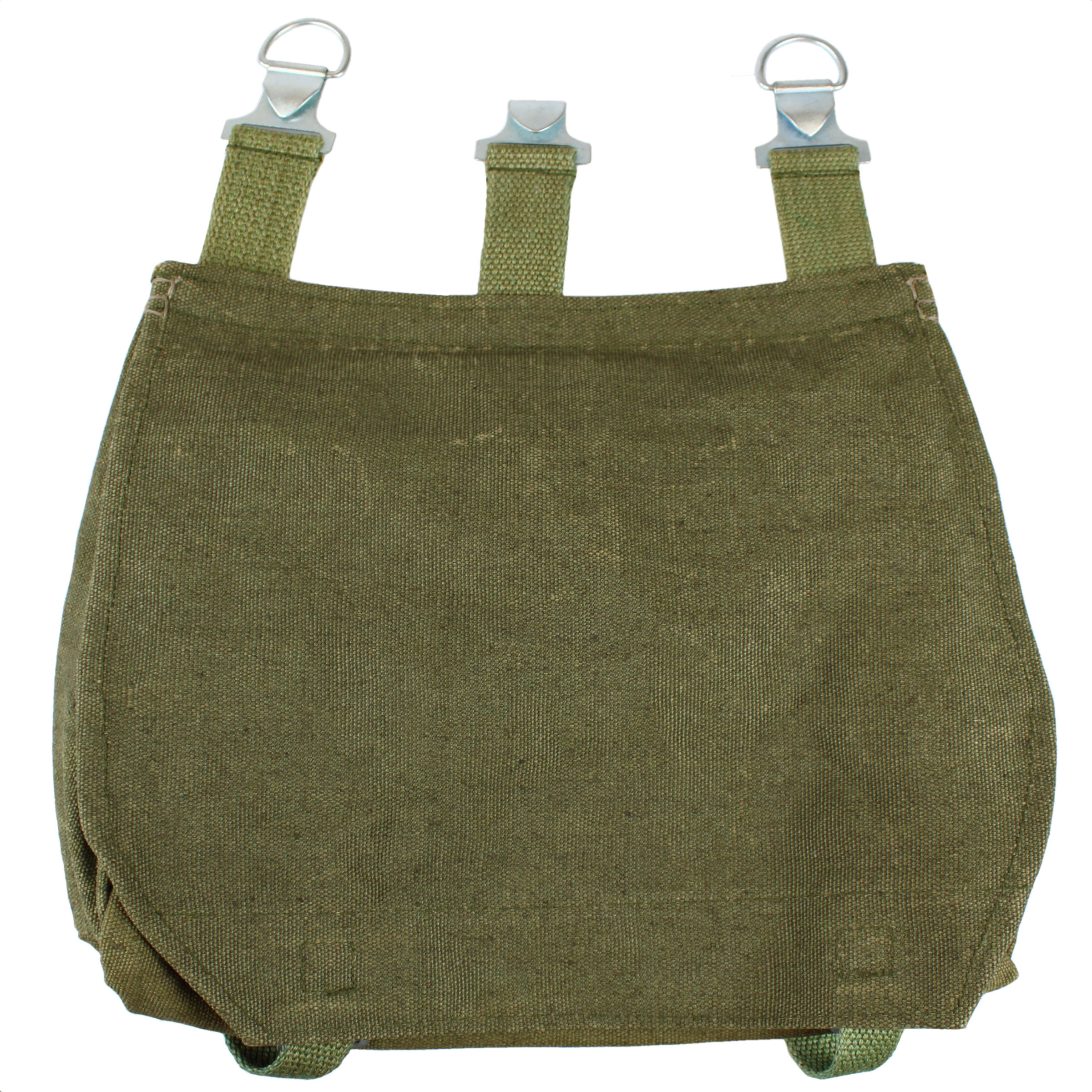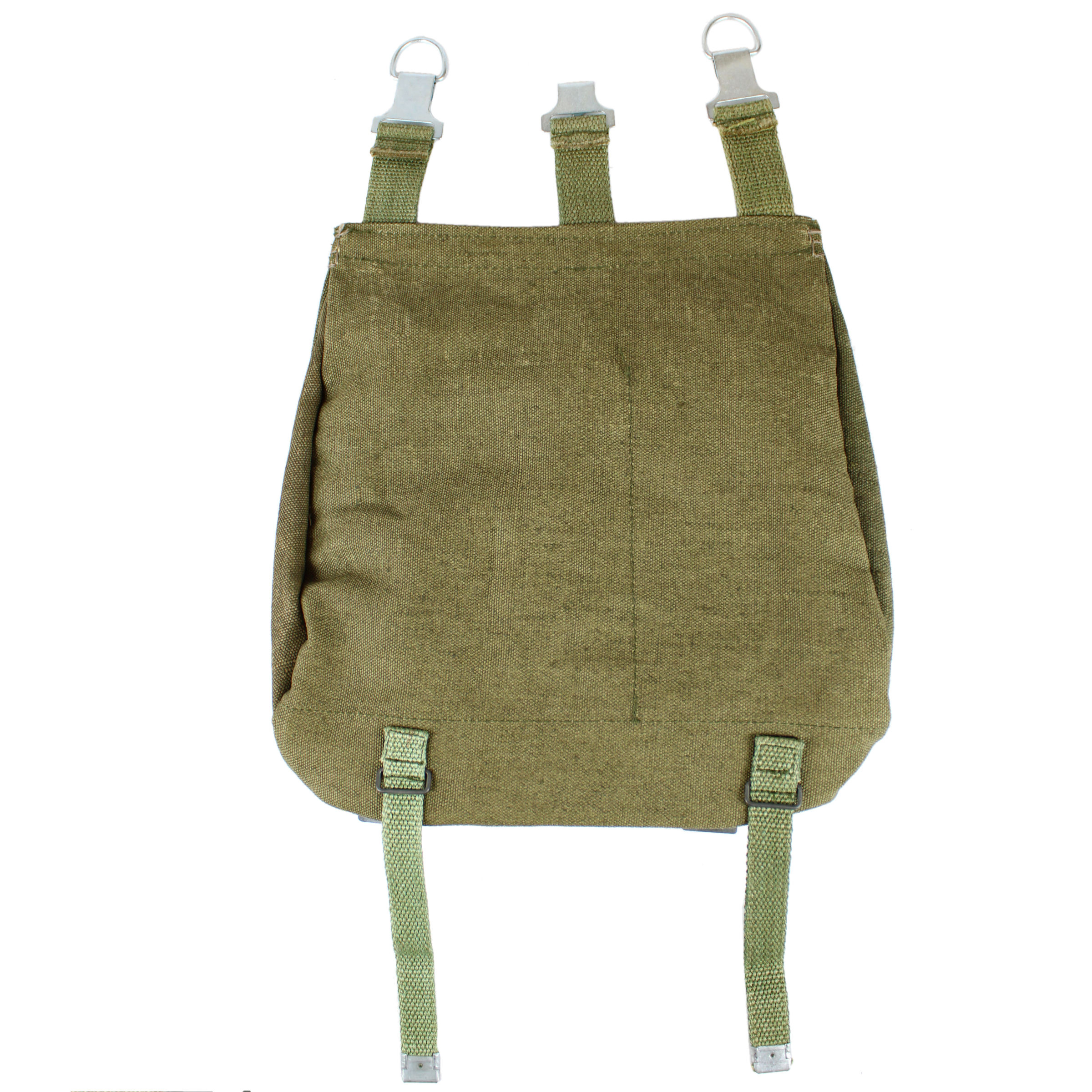 Wierna replika polskiego chlebaka wz. 33. Wykonany (zarówno brezent, taśmy jak i część okuć) z materiałów pochodzących z powojennego demobilu wojskowego (może nosić znaki używania, długotrwałego magazynowania, oraz ślady starych oznaczeń czy stempli). Główne zaczepy chlebaka to współcześnie wykonane repliki ze stali ocynkowanej. Wewnątrz torby są dwie małe kieszonki wykonane z tkaniny bawełnianej w kolorze khaki. Posiadamy w ofercie również dedykowany pasek nośny do tego chlebaka.