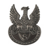 Doskonała replika rzemieślnicza orzełka strzeleckiego do nakryć głowy. Replika wykonana z mosiądzu i pokryta powłoką przypominającą patynę. Orzełek mocowany na wąsy.