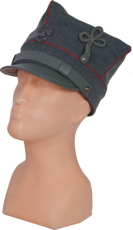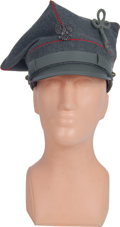 Doskonała replika rogatywki Armii Wielkopolskiej, w stopniu strzelca piechoty. Czapka uszyta z naturalnych materiałów - sukna w pierwszowojennym odcieniu feldgrau, podszewka z naturalnej białej bawełny , natomiast pasek, daszek i potnik wykonane są ze skóry licowej bydlęcej, roślinnego garbowania. Zgodnie z rozkazami, daszek i pasek są w barwie "polowoszarej" czyli w pierwszowojennym odcieniu feldgrau. Do rogatywki dołączony jest orzełek wielkopolski w wersji rzemieślnicznej - nie jest przymocowany, gdyż w Wojskach Wielkopolskich mocowane je na różnych wysokościach. Zdecydowanie polecamy - replika z najwyższej półki, produkcja własna Nestof®!