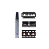 Piękna stalowa maszynka do golenia. Współczesna produkcja, która nawiązuje swoim wzornictwem do epokowych maszynek z okresu 2 wojny światowej. W zestawie znajduje się jedno ostrze. Maszynka jest 3 elementowa. Niezbędny element wyposażenia chlebaka czy plecaka żołnierza.
