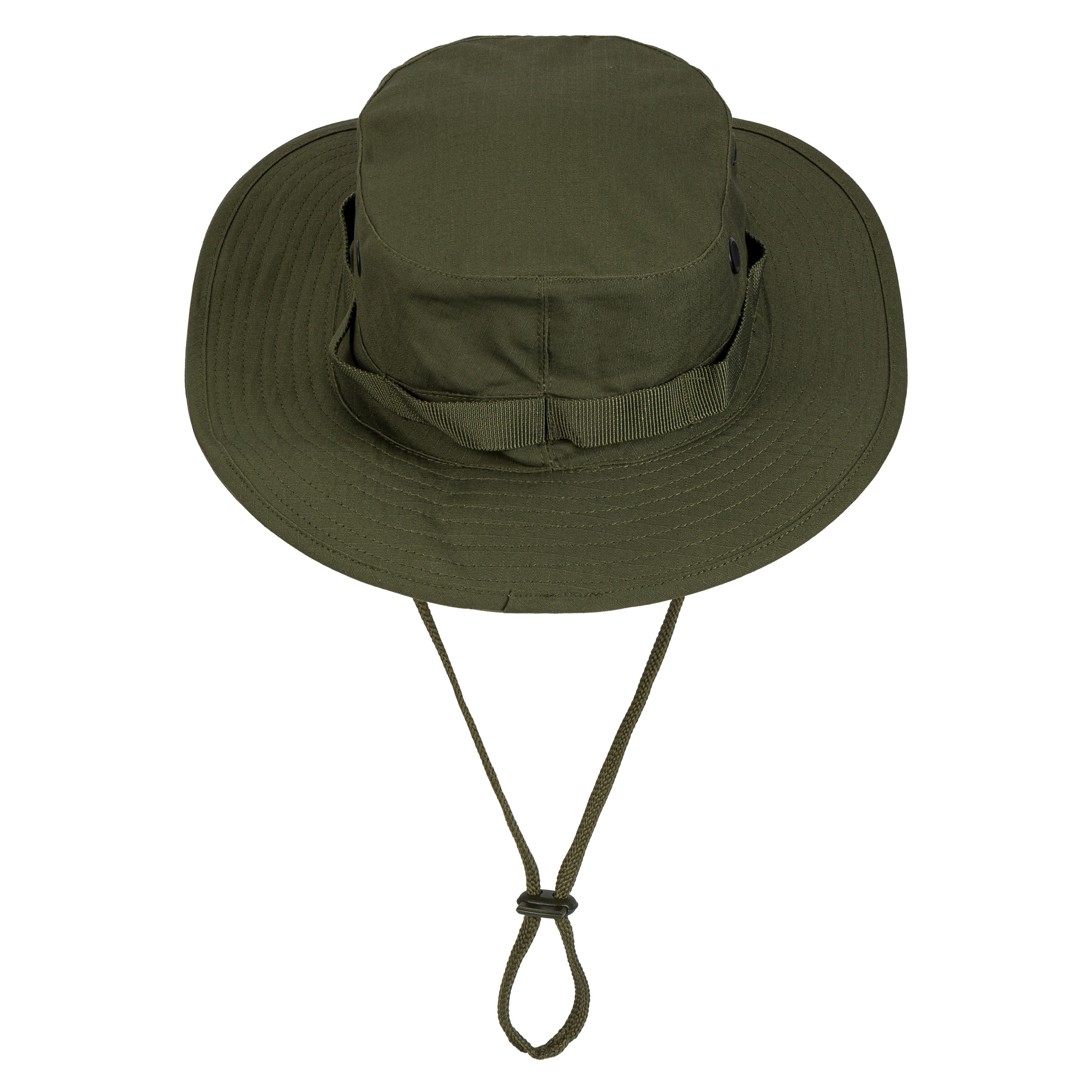 Replika kapelusza Jungle Hat, drugiego wzoru, popularnie nazywanego "Boonie Hat". Kapelusz wykonany z tkaniny bawełnianej w splocie rip-stop w kolorystyce oliwkowej. Kapelusz posiada cztery wywietrzniki w górnej części, dla poprawy wentylacji w upalne dni. Obszyty jest bawełnianą tasiemką służącą do mocowania roślinności celem maskowania. Dodatkowo ma regulowaną tasiemkę pod brodę.