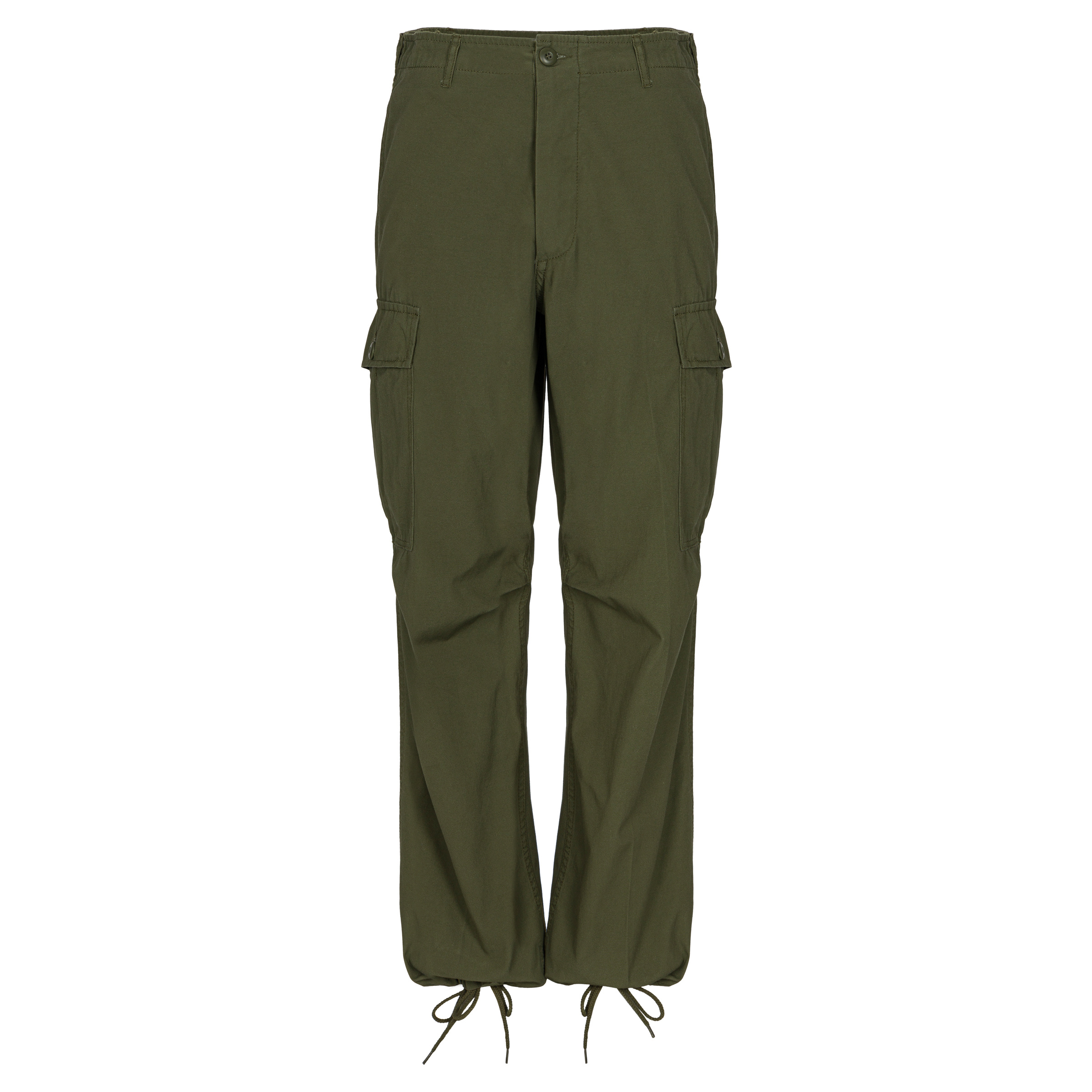 Replika spodni mundurowych TCU "Tropical Combat Uniform", popularnie zwanych "jungle fatigues". Replika przedstawia pierwszy wzór umundurowania, który został zatwierdzony w 1963 roku. Spodnie wykonane z tkaniny bawełnianej w splocie poplin w kolorystyce OG-107. Spodnie posiadają dwie duże kieszenie cargo na wysokości ud oraz dwie mniejsze kieszenie wewnętrzne na pośladkach, wszystkie zapinane guzikami. Dodatkowo standardowe kieszenie typu otwartego na biodrach. Charakterystyczną cechą dla umundurowania TCU pierwszego wzoru są odkryte guziki w kieszeniach (nie przysłonięte klapą).