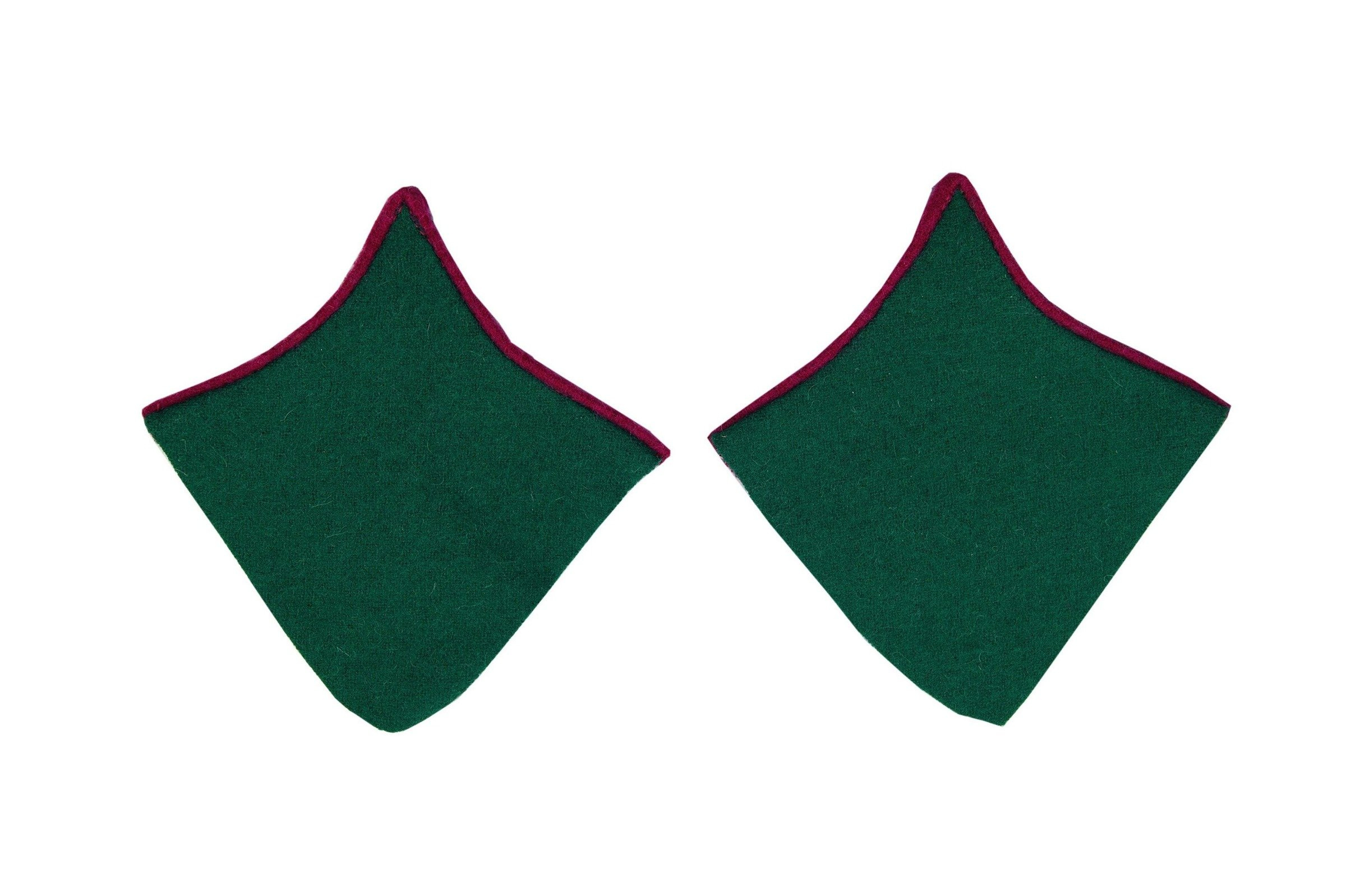 Doskonała replika patek wojsk pogranicznych NKWD wz. 1937, przeznaczonych do naszycia na kołnierzu szynela. Patki wykonane są z sukna, posiadają usztywnienie, otok amarantowy, tło ciemnozielone - barwa broni wojsk pogranicznych NKWD.