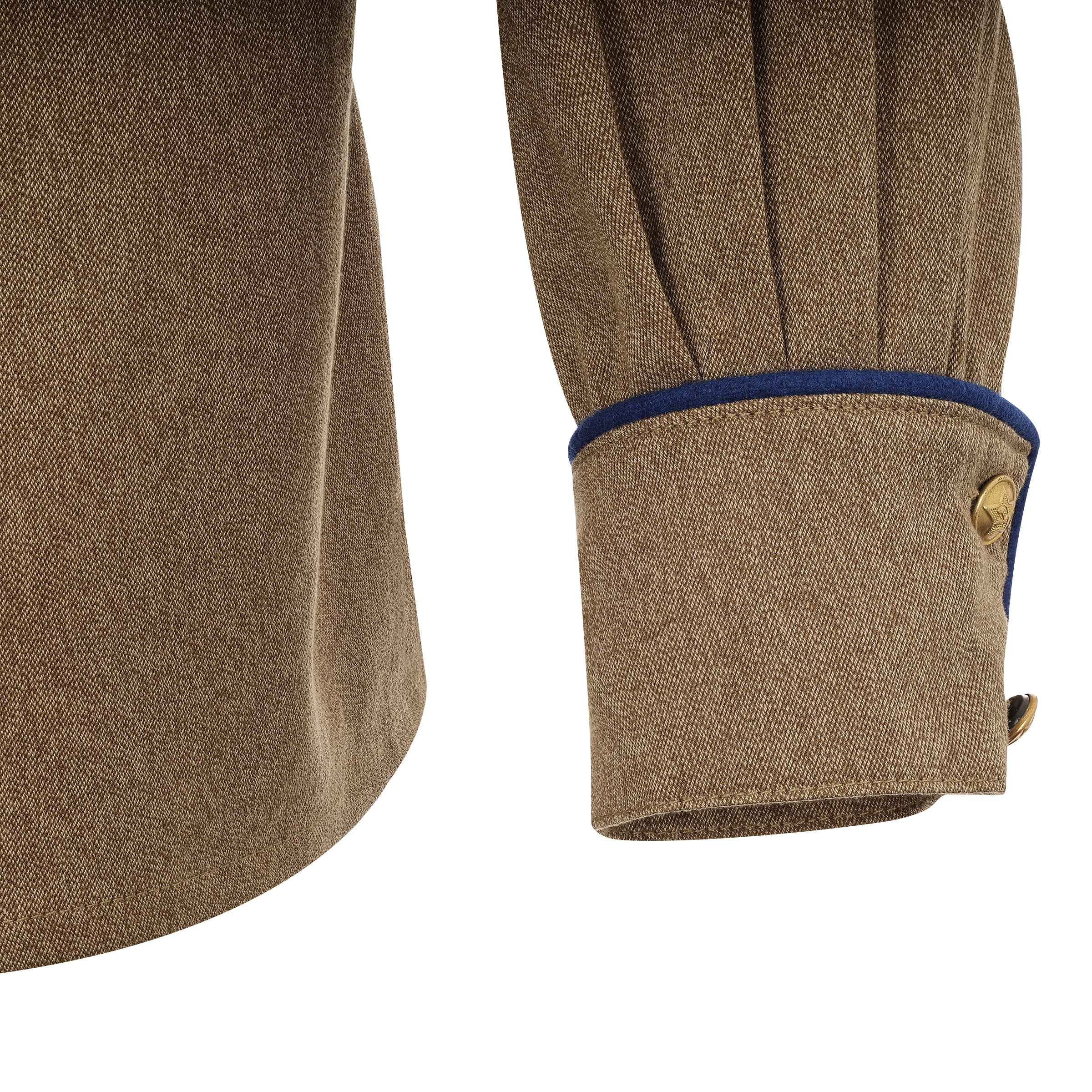 Doskonała replika gimnastiorki oficerskiej wz. 1943, przeznaczonej dla NKWD. Gimnastiorka wykonana jest z charakterystycznego radzieckiego drelichu z białą nitką, mankiety posiadają otok w kolorze błękitnym, wykonany z naturalnego sukna.