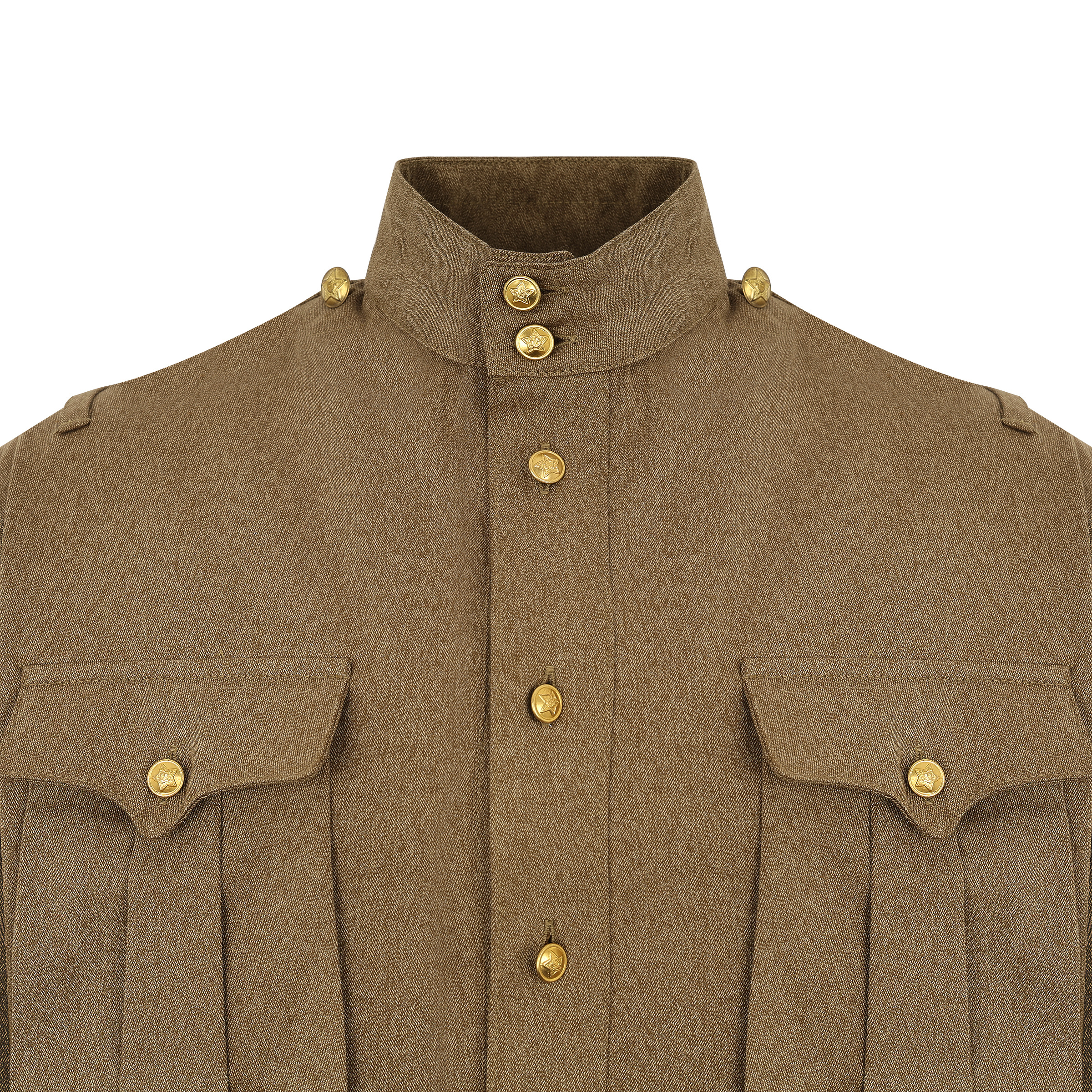 Doskonała replika gimnastiorki oficerskiej wz. 1943, przeznaczonej dla NKWD. Gimnastiorka wykonana jest z charakterystycznego radzieckiego drelichu z białą nitką, mankiety posiadają otok w kolorze błękitnym, wykonany z naturalnego sukna.