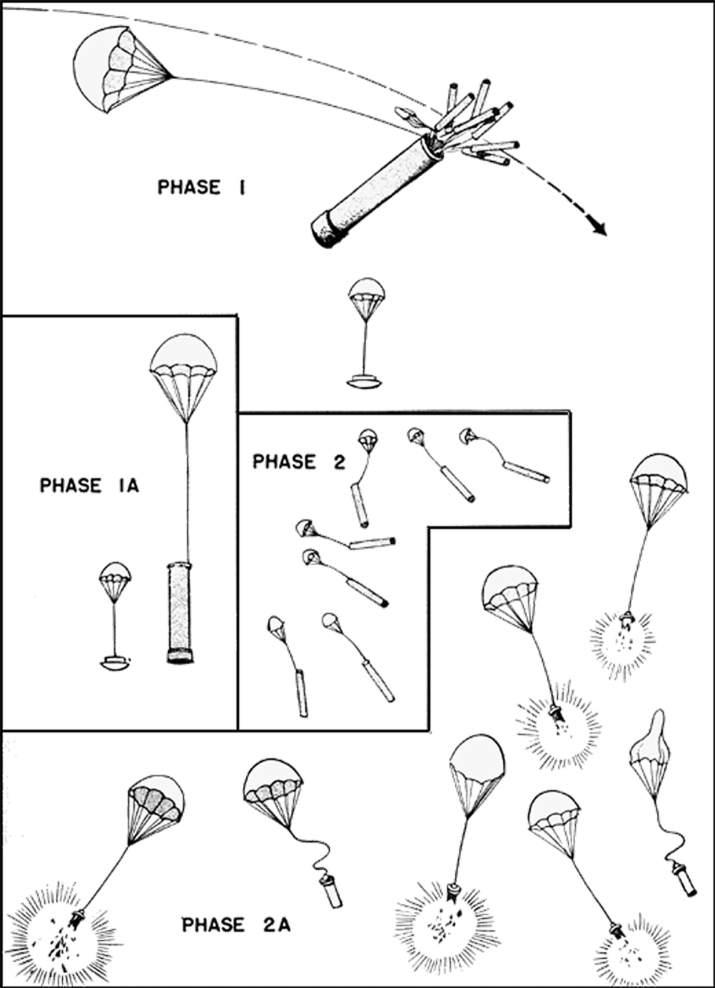 Pocisk był rurą zawierającą siedem pojedynczych min, każda o średnicy około 11/16 cala (18 mm) i długości 3 cali (76 mm). Każda mina była wyposażona we własny spadochron. Po wystrzeleniu moździerz wyrzucał pocisk na odległość od 3000 do 4000 stóp (900 do 1200 m) i maksymalną wysokość około 600 m (2000 stóp). Pocisk wyrzucał miny na szczycie łuku. Następnie opadały one na spadochronach. Były one podpalane i detonowały w momencie kontaktu z celem (np. samolotem, który zahaczył o linkę opadającej miny w trakcie przelotu) lub po określonym czasie. Pocisk mógł być również wystrzelony ze standardowego moździerza piechoty Typ 11 kal. 70 mm. Oprócz funkcji przeciwlotniczej, pocisk był również wykorzystywany jako przeciwpiechotna amunicja kasetowa. Oferowana replika nie zawiera żadnych materiałów wybuchowych i jest pusta w środku.