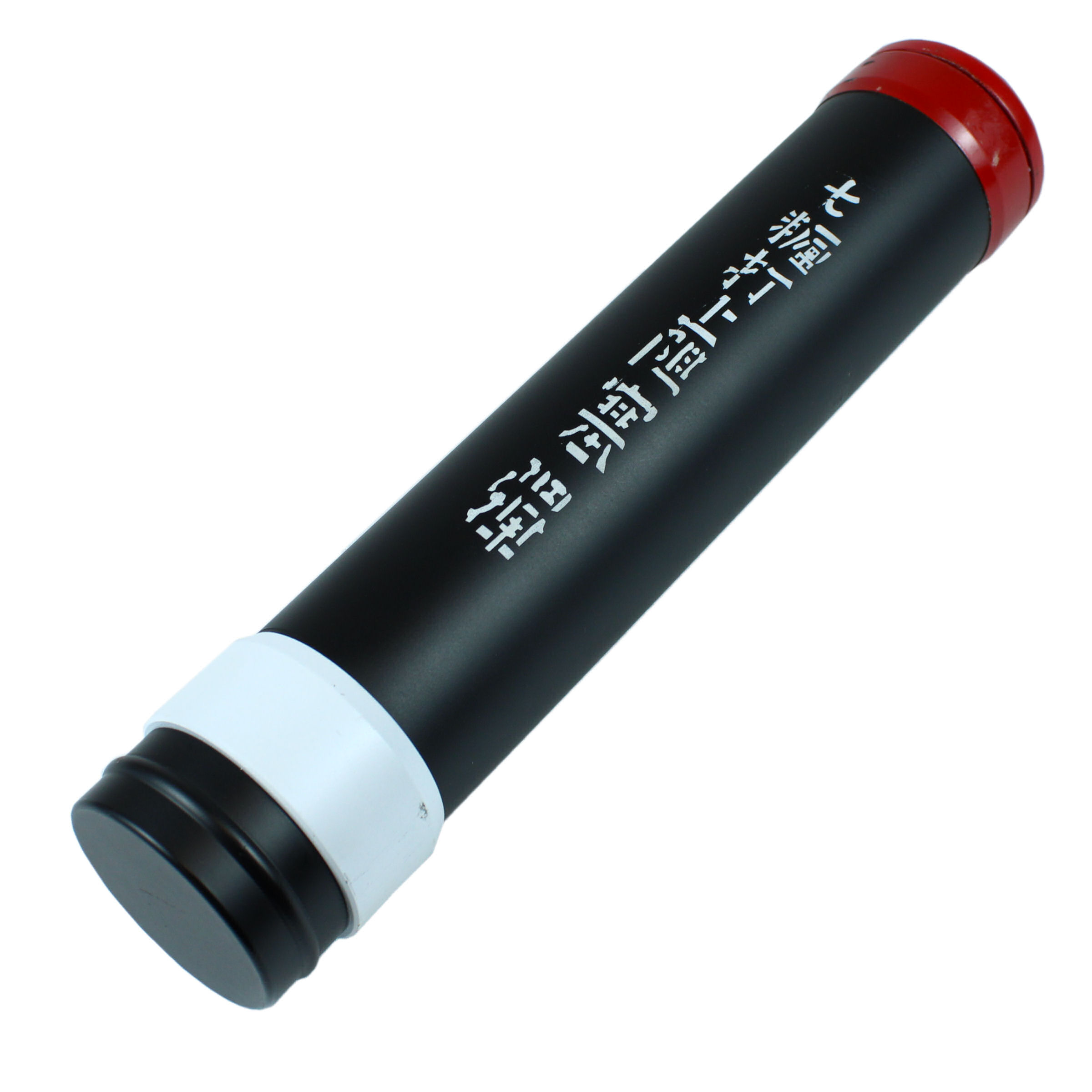 Replika japońskiego moździerzowego pocisku przeciwlotniczego. Replika wykonana ze stali w formie pustego cylindra, z przyklejonym czubkiem wykonanym z drewna. Denko jak i wieko jest odkręcane.