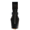 - Skóra lakierowana i czarne nity.
